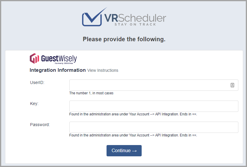GuestWisely Owner Token, API Key and Pass from Step 1.